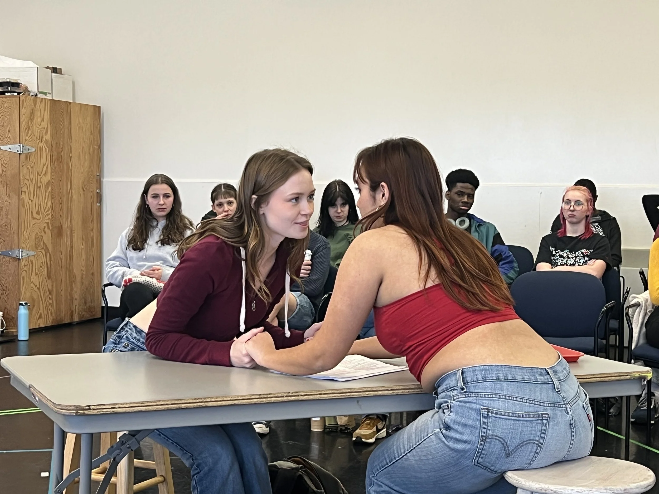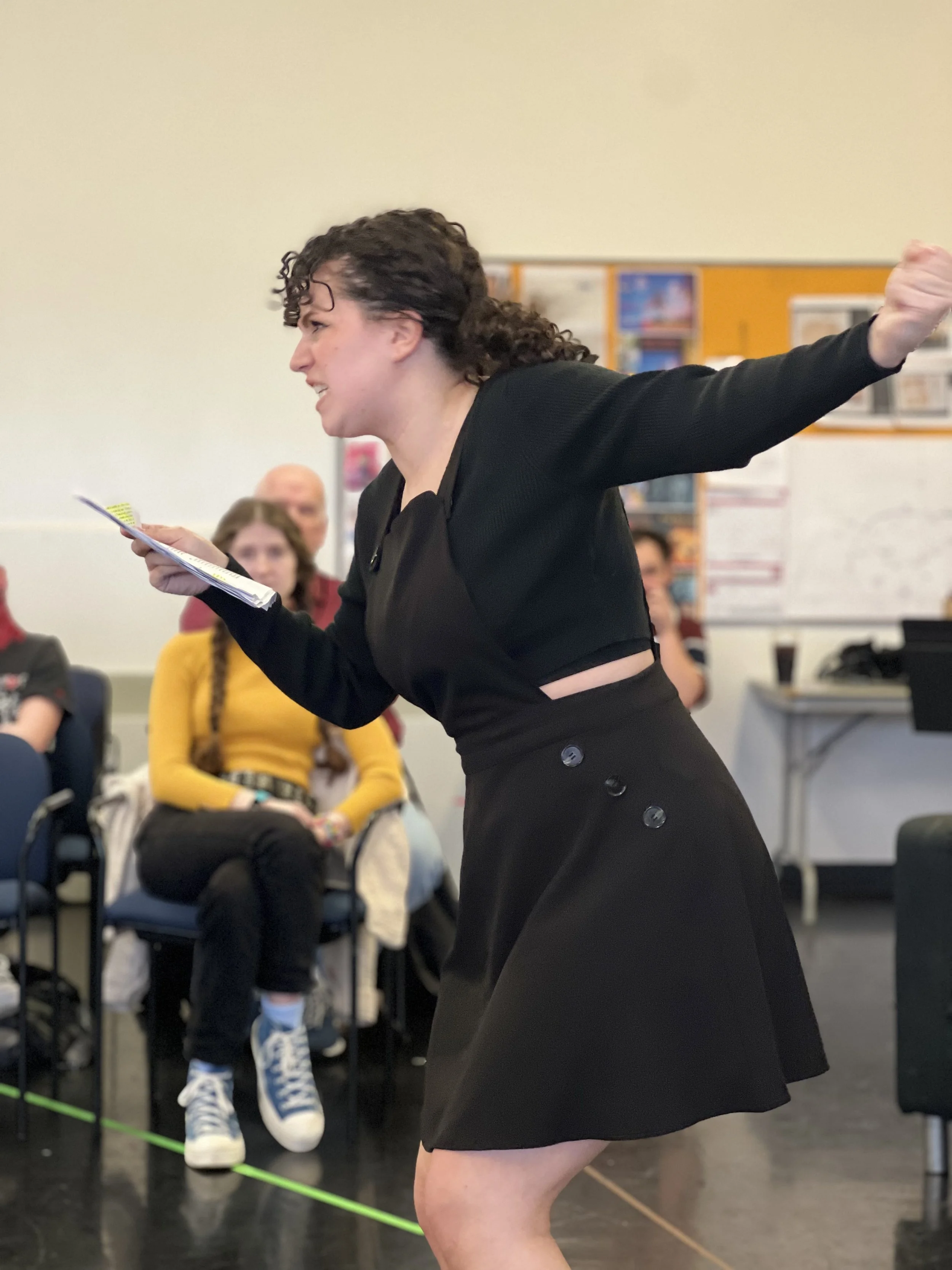My sophomore year as a directing major at Webster University, we were tasked with directing two staged readings of plays we were interested in over the course of the year. We had a mere three hours on a single day to stage the entire show, with a public performance later that afternoon/evening. I was inspired by an incredible Dramatists Guild interview between Christopher Durang and David Lindsay-Abaire to take on Christopher Durang’s cynical but heartfelt one-act, Sister Mary Ignatius Explains It All For You. My vision was to create an immersive experience for the audience in a non-traditional theatre space, so I reserved a classroom in Webster Hall, the oldest building on campus and former chapel. In the first half of the show where Sister Mary Ignatius is lecturing about the tenets of Catholicism, the audience sat like students in the classroom, taking notes and submitting questions on notecards. When the other characters entered to do their make-shift performance of the Nativity story, the audience had to get up and move their tables and chairs to the periphery of the room to create a performance space that was utilized for the rest of the show. The non-traditional space was challenging to stage, but it was so much fun to execute and really put the audience in the middle of the action. The cast was incredible and we had so much fun bringing these eccentric characters to life.
